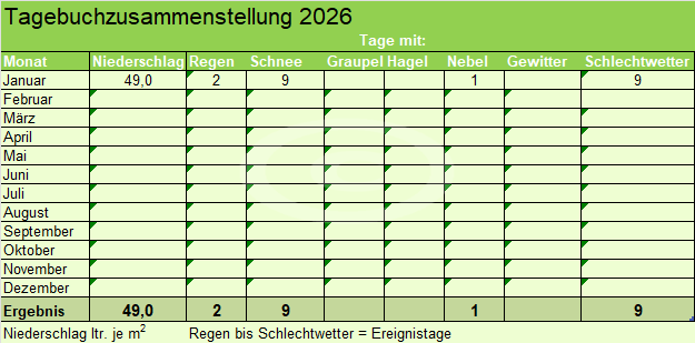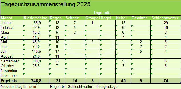 wird monatsweise erstellt. Es stimmt mit den Aufzeichnungen der monatlichen "Wetterberichte" überein.