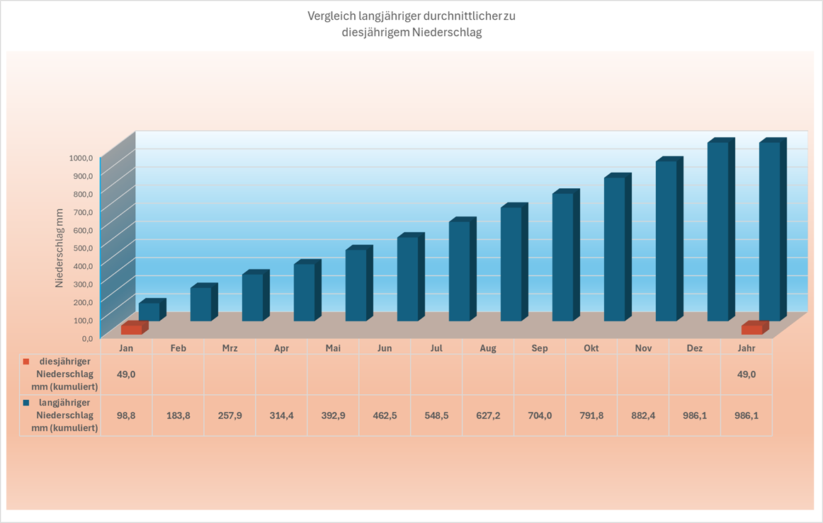 Die folgenden Diagramme zeigen die Entwicklung der diesjährigen Niederschläge und Temperaturen im langjährigen Vergleich.