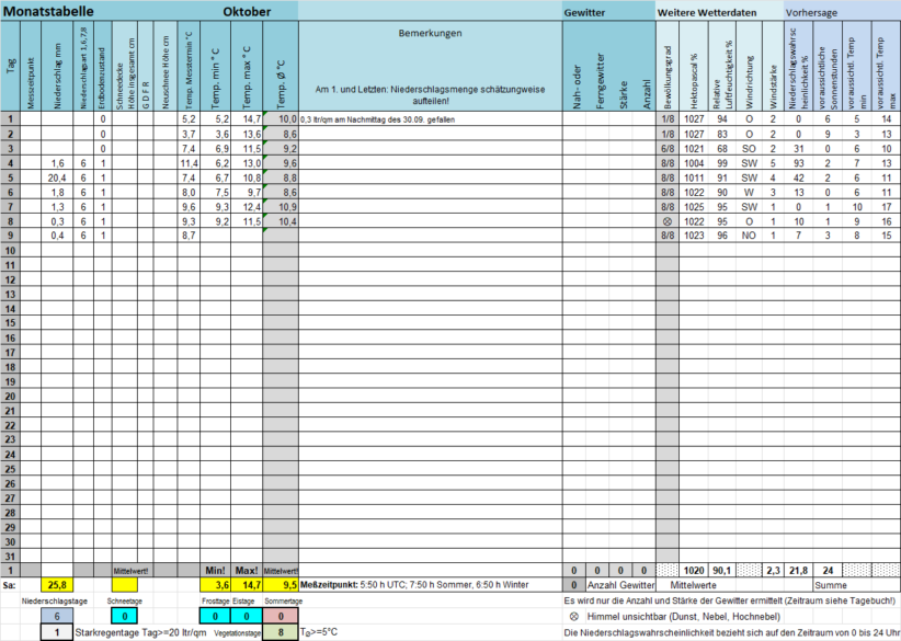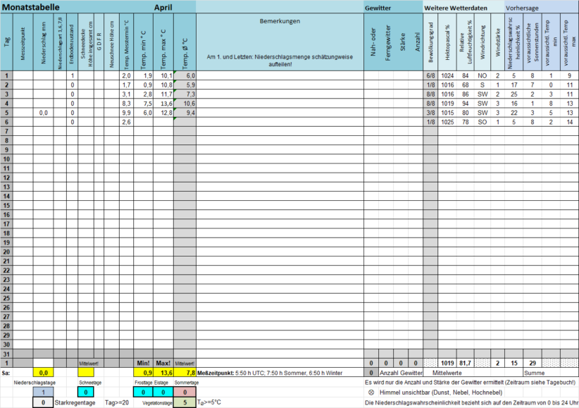 Die "Monatstabelle" gibt die Daten des laufenden Monats wieder, sie wird fortlaufend aktualisiert. Am Monatsanfang werden zwei Tabellen angezeigt.