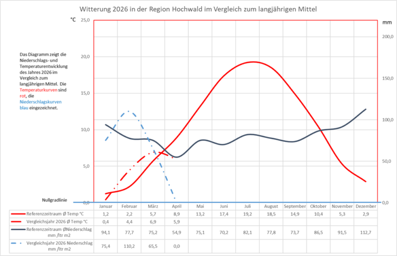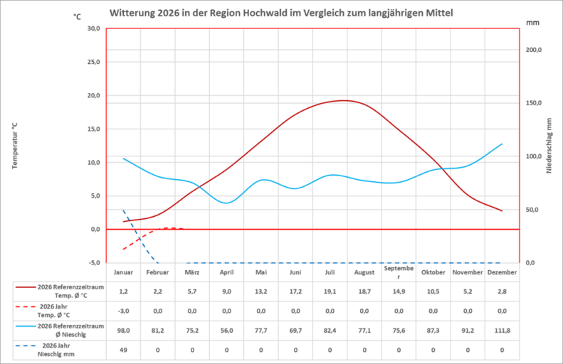 Die nachfolgenden Diagramme zeigen im Vergleich den Witterungsverlauf eines Jahres zum langjährigen Mittel. Die Vergleiche beginnen mit dem Jahr 2018.