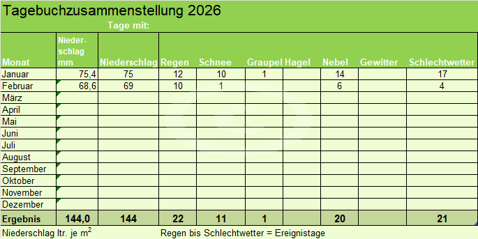 wird monatsweise erstellt. Es stimmt mit den Aufzeichnungen der monatlichen "Wetterberichte" überein.