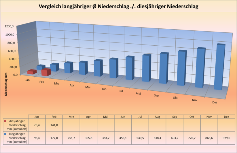 Die folgenden Diagramme zeigen die Entwicklung der diesjährigen Niederschläge und Temperaturen im langjährigen Vergleich.