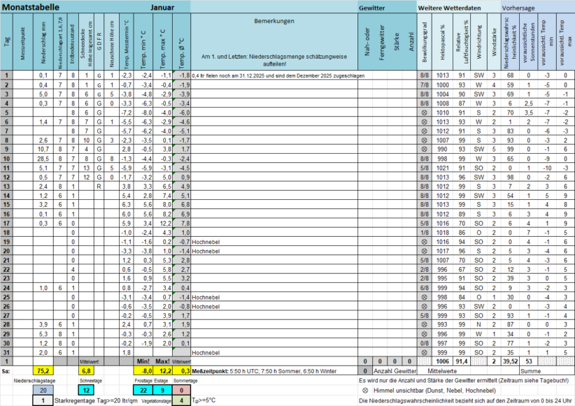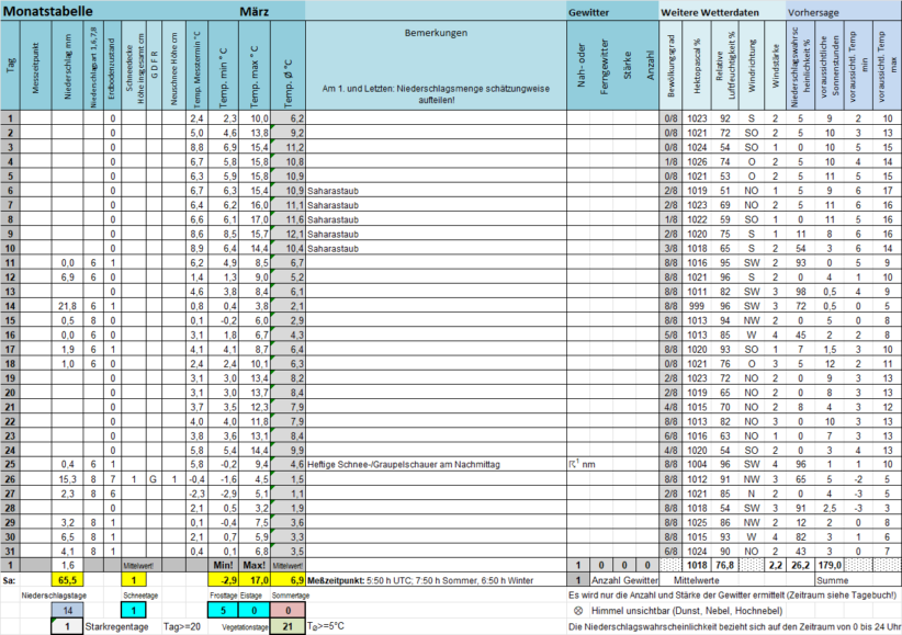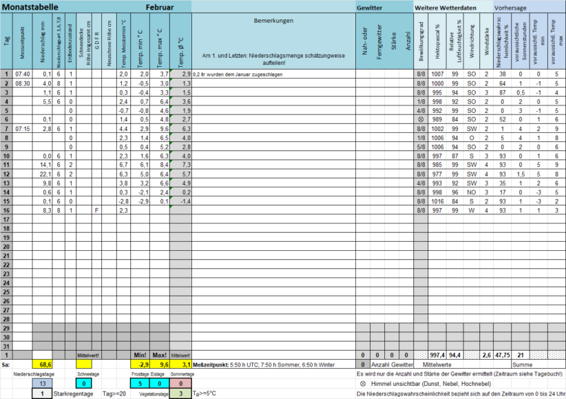 Die "Monatstabelle" gibt die Daten des laufenden Monats wieder, sie wird fortlaufend aktualisiert. Am Monatsanfang werden zwei Tabellen angezeigt.