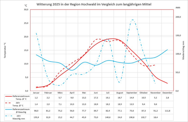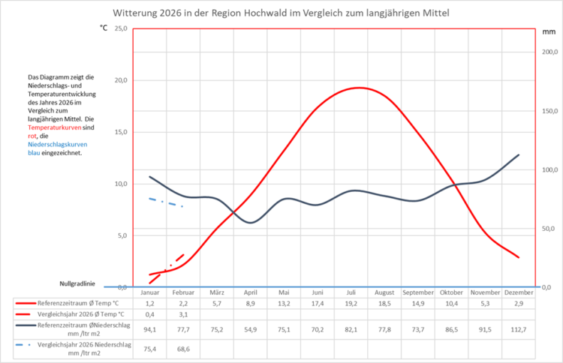Die nachfolgenden Diagramme zeigen im Vergleich den Witterungsverlauf eines Jahres zum langjährigen Mittel. Die Vergleiche beginnen mit dem Jahr 2018.